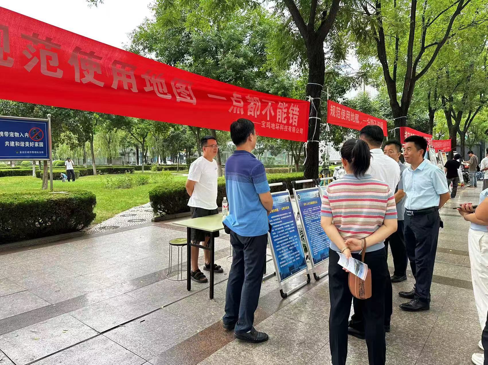 寶雞地環(huán)科技有限公司在寶雞市自然資源和規(guī)劃局組織和代領(lǐng)下。公司員工參加測繪法暨國家版圖意識宣傳有獎知識競賽活動,在陳倉園市民廣場開展主題活動,并于公司所在社區(qū)內(nèi)以橫幅、展板、分發(fā)宣傳彩頁的形式進行宣傳,圍繞地圖種類、中國版圖知識、測繪法律法規(guī)等重點,向廣大市民開展深入、細致的宣傳。